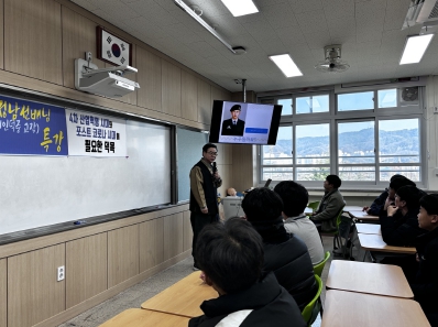 강의를 경청한 3학년 배정우학생은 “우리학교를 졸업한 훌륭한 여러 선배님들처럼 김천중앙중학교 졸업생으로 자부심을 가지고 바른인성으로 후배들에게 귀감이 되는 선배가 되기 위해 매사에 최선을 다해야겠다”고 다짐했다.