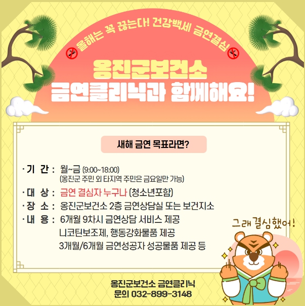 보건소 관계자는 “올 한해 금연클리닉을 이용해 전문적인 지원을 받아 금연에 꼭 성공하기를 바라며, 앞으로도 지역주민의 건강향상과 건강한 금연환경 분위기 조성에 노력하겠다”고 밝혔다.