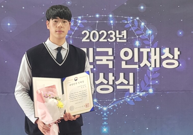 장흥 정남진산업고등학교 기계자동차과 3학년 정태성 학생은 지난해말 교육부가 주최하고 한국장학재단이 주관하는 ‘2023 대한민국 인재상’에 선정돼 부총리 겸 교육부장관상을 받았다.