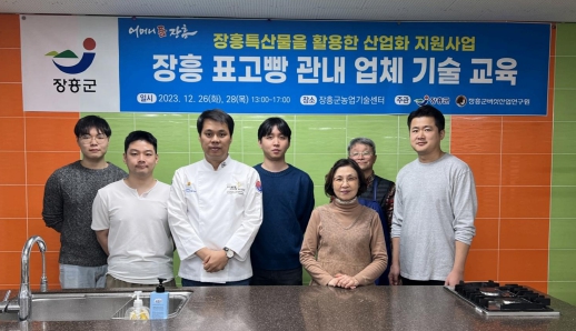 교육은 기술이전을 희망한 업체 중 장흥군에 위치한 베이커리 카페 3곳을 초청해 표고빵 제작을 위한 이론교육과 실습교육으로 진행했다.