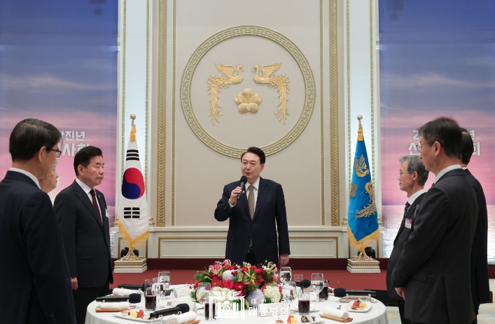 ![]() 1월 3일 윤석열 대통령은 청와대 영빈관에서 5부 요인 및 국가 주요 인사들이 함께한 ‘2024년 신년인사회’에 참석했다. |