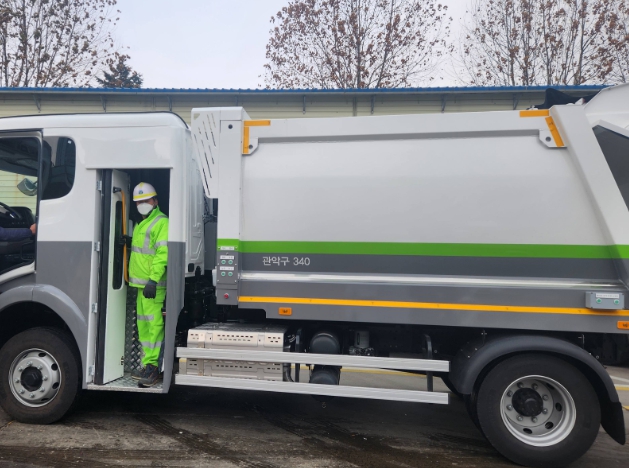 이번에 도입한 후방저상형 청소차는 운전석과 폐기물 적재함 사이에 별도의 환경공무관 탑승공간이 있어 환경공무관이 편리하게 오르내릴 수 있다.