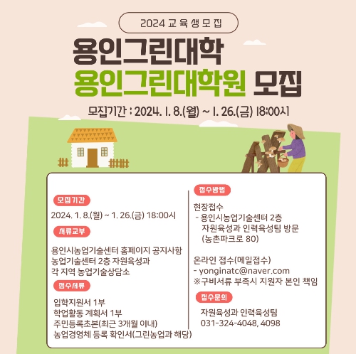 ![]() 2024년 용인그린대학 교육생 모집 포스터 |