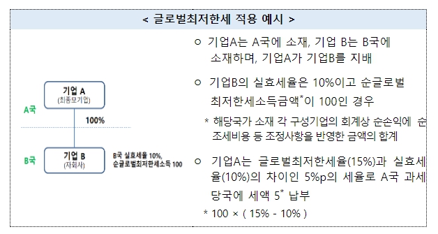 글로벌최저한세는 일정 규모 이상의 다국적기업을 대상으로 ’24년 1월 1일 이후 사업연도부터 적용되며, 최초 신고서 제출기한은 ’26년 6월 말일이다.