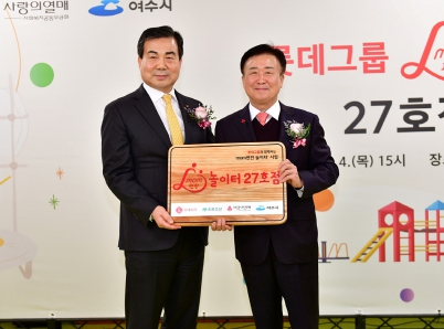 이날 개관식에는 정기명 시장, 국회의원, 도·시의원, 전남도여수교육지원청 교육장, 롯데지주(주)·어린이재단·사회복지공동모금회 임직원, 어린이집 연합회 회장단 등 50여명이 참석했으며, 여수시는 감사의 뜻을 담아 롯데지주(주)에 감사패를 전달했다.