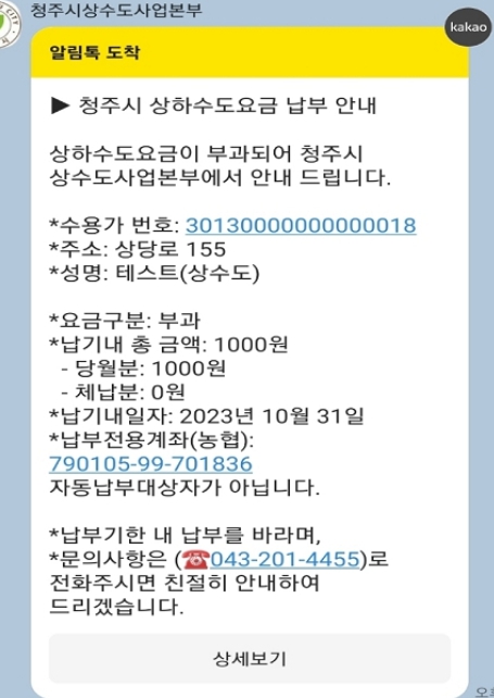 ![]() 청주시 상하수도 요금 카카오 알림톡 서비스 제공 |
