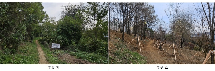![]() 온수근린공원(문학지구) 기후대응 도시숲 조성 전, 후 모습 |