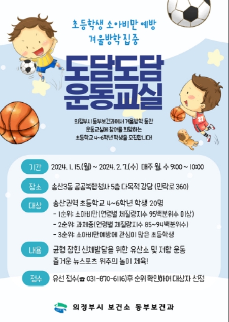 ![]() 소아비만 예방 겨울방학 도담도담 운동교실 참가자 모집 안내문 |