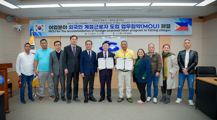 ![]() 여수시가 지난 4일 오후 필리핀 우바이시와 어업분야 외국인 계절근로자 도입 업무협약을 체결하며 어촌 인력난 해소에 나섰다. |