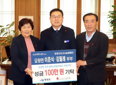 ![]() 영광군 묘량면 이춘식, 김필례 부부 ‘희망2024나눔캠페인’ 성금 100만 원 기탁! |