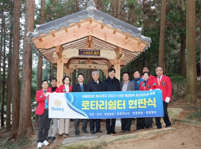 ![]() 국제로타리 3610지구, 장흥 편백숲 우드랜드에 쉼터 기증 |