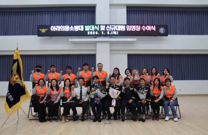 신규 발대한 아라의용소방대의 오민 대장은 “의용소방대원으로서 자긍심을 갖고 지역사회의 큰 등불이 되도록 조직을 이끌어 가겠다”며 포부를 밝혔다.