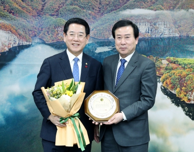![]() 김영록 전남도지사, 박홍률 목포시장에게 감사패 |