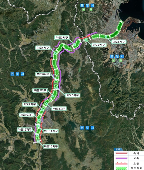 포항·경주 일원의 형산강 유역은 여름철 우기에 잦은 침수피해가 발생되는 지역으로 특히, 2022년 태풍 힌남노 내습 시 형산강의 지류인 냉천이 범람하면서 포스코와 현대제철의 시설이 침수되는 등 큰 피해를 입은 지역이다.