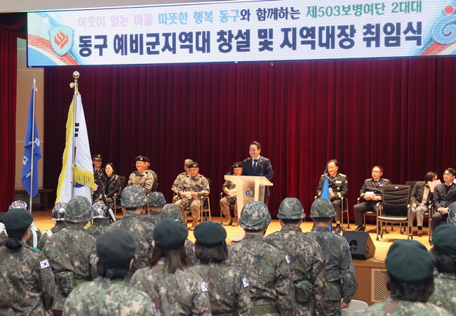 임택 동구청장은 “지역 안보태세를 더욱 확고하게 할 동구 예비군 지역대 창설을 동구 주민을 대신해 축하한다”면서 “앞으로 주민들이 안심하고 생업에 종사할 수 있도록 지역 안보 수호에 최선을 다해주길 당부드린다”고 말했다.