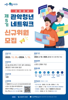 한편, 구는 ‘관악청년네트워크’ 신규 위원을 오는 1월 15일까지 모집한다.