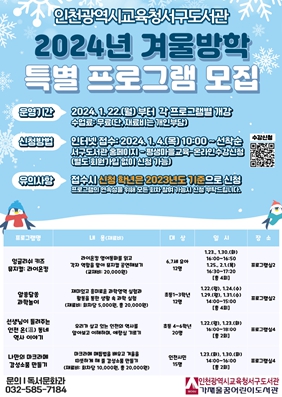 ![]() 인천광역시교육청서구도서관, 2024 겨울방학 특별프로그램 운영 |