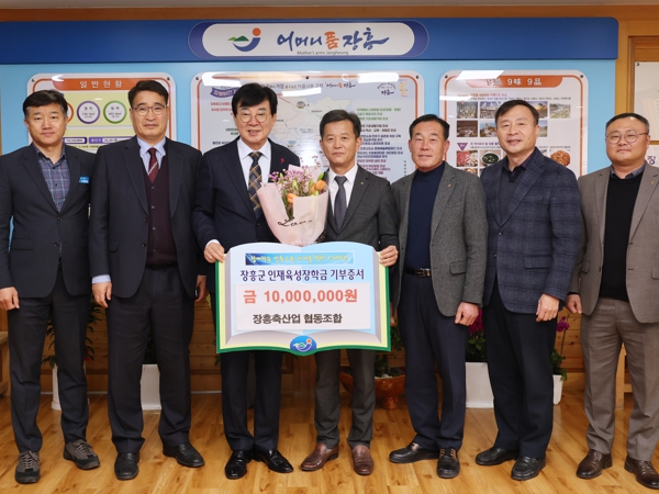 장흥축산업협동조합은 2015년부터 올해까지 매년 지역인재육성을 위하여 총 1억 5백만원을 기탁하여 장흥군 인재육성의 든든한 후원자 역할을 해오고 있다.