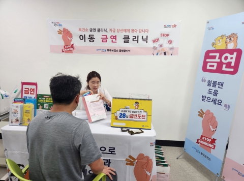 이동 금연클리닉은 보건소 방문이 어려운 흡연자가 10명 이상인 사업장이나 기관에 금연상담사가 찾아가는 서비스로, 6주간 주 1회 사업장을 방문해 기초 건강조사 및 1:1 맞춤 금연 상담을 통한 개인에 맞는 행동요법, 금연보조제를 지원한다.