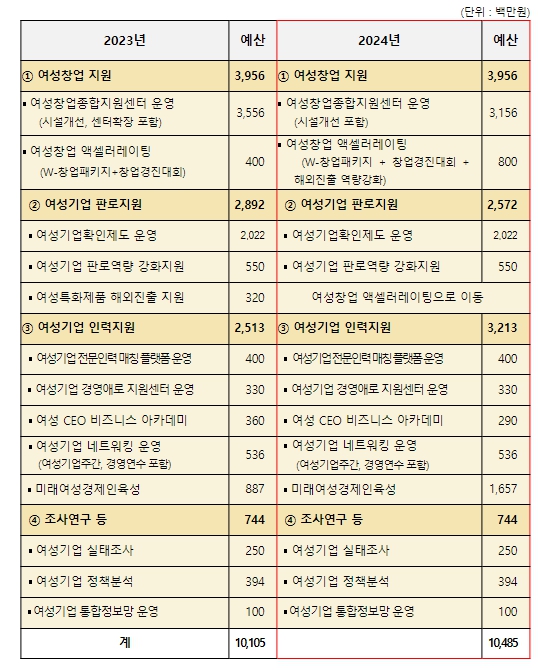 2024년 ‘여성기업육성사업’ 주요 내용은 다음과 같다.