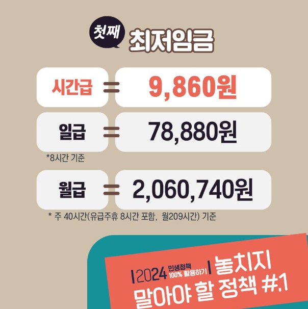 시급 : 9,860원, 일급 : 78,880원, 월급 : 2,060,740원