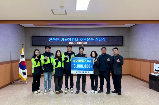 이번 후원금 기탁은 사회 취약계층, 지역의 위기가정 등 복지서비스가 필요한 대상자들에게 지원하기 위해 기획됐으며, 천북면자율방범대는 연말연시 따뜻한 이웃사랑을 실천해 나아가고 있다.