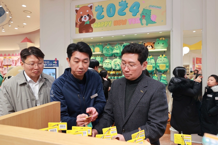 이 시장은 이날 에버랜드 입구에 있는 대표 기념품 샵인 라시언 메모리엄과 그랜드 엠포리엄 매장을 방문해 매장에 진열된 캐릭터 협력 상품을 살펴보고 상품 구매자들에게 새해 인사를 건넸다.