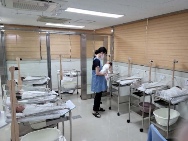 ![]() 산후조리원 관계자가 신생아들을 돌보고 있다. |