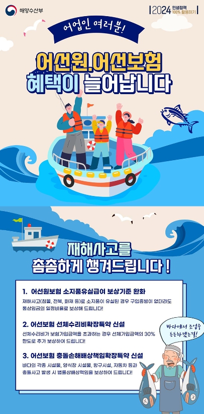 지금 바로 더욱 촘촘하고 풍요로워진 어선원·어선보험 혜택을 확인해 보세요!