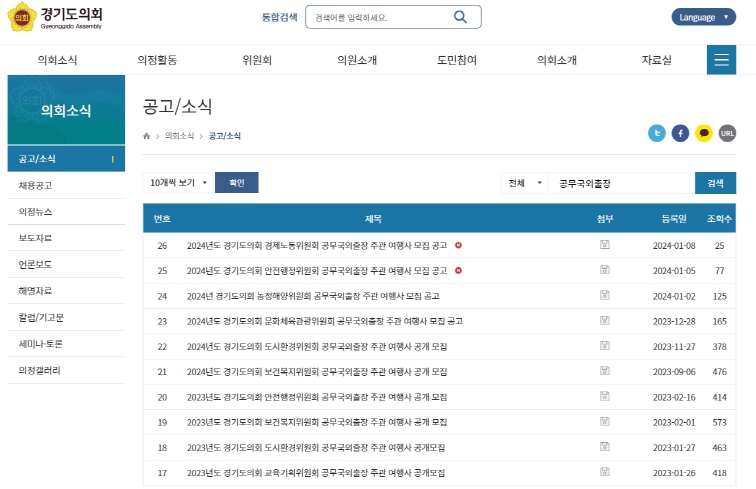 한편 경기도의회 홈페이지에 따르면 경기도의회는 농정해양위원회(5월6일~15일/이탈리아·스위스), 도시환경위원회(5월14일~23일/네덜란드·벨기에·룩셈부르크), 문화체육관광위원회(5월16일~26일/이탈리아·스위스)로 공무국외출장을 준비하고 있는 등 사실상 경기도의회 모든 상임위원회가 5월 중에 공무국외출장을 준비 중인 것으로 알려졌다.