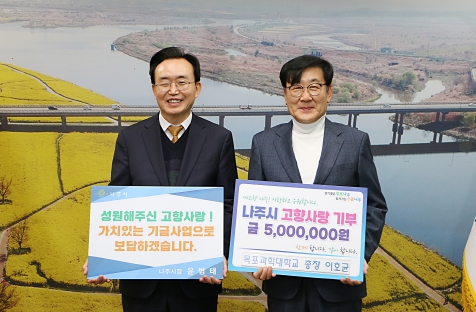 나주시는 이호균 총장이 고향사랑기부금 최고 한도액인 500만원을 기탁했다고 9일 밝혔다.