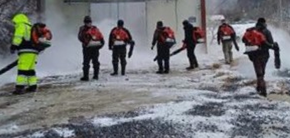 마을 이장의 제설작업 참여 방송을 시작으로 전 주민이 제설용 송풍기와 빗자루를 들고 제설차량이 작업할 수 없는 골목길과 내 집 앞의 눈을 치운다.