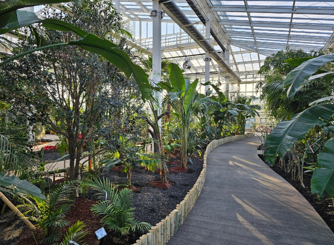 눈이 내리는 바깥 날씨와 대조적으로 온실 내부는 항상 영상 25도로 유지되어, 외투를 벗고 다닐만큼 이색적이다.