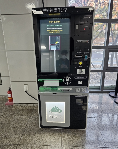 이 중 강북구청, 삼양동 주민센터, 수유1동 주민센터 무인민원발급기는 민원서비스 접근성을 높이기 위해 365일 24시간 개방형으로 운영하고 있다. 무인민원발급기 운영시간, 위치, 발급서류 등 자세한 사항은 강북구 홈페이지에서 확인할 수 있다.