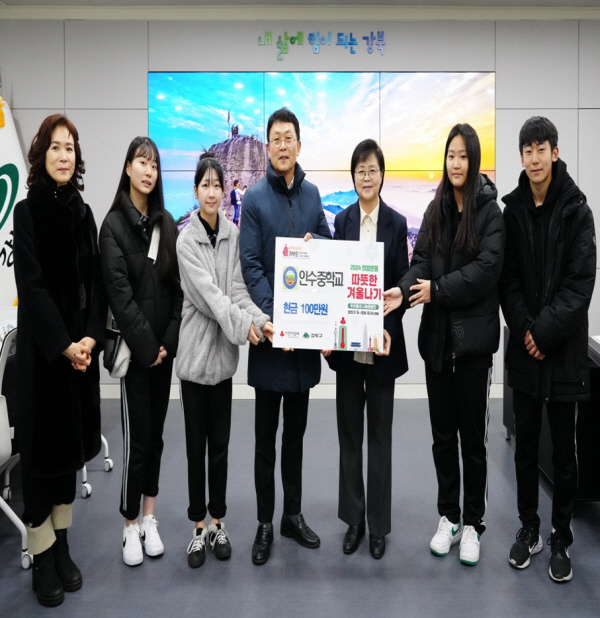 이순희 강북구청장은 “소중하게 성금을 마련해주신 인수중학교 학생들과 교직원들께 감사드린다”며 “학생들의 응원의 마음도 어려운 구민에게 꼭 전달하겠다”고 감사의 인사를 전했다.