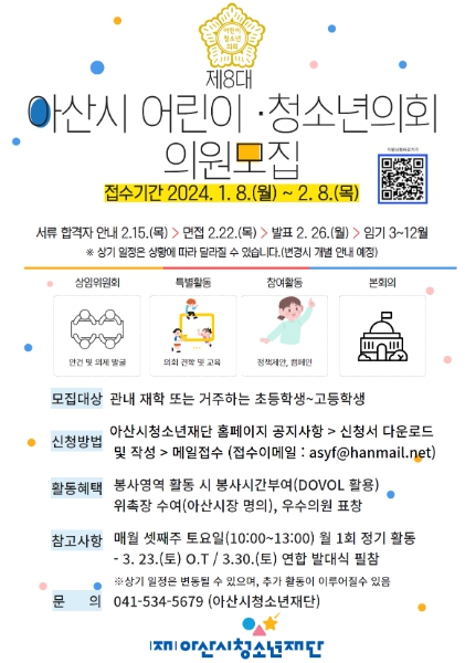 ![]() 제8대 아산시 어린이·청소년의회 의원모집 포스터 |
