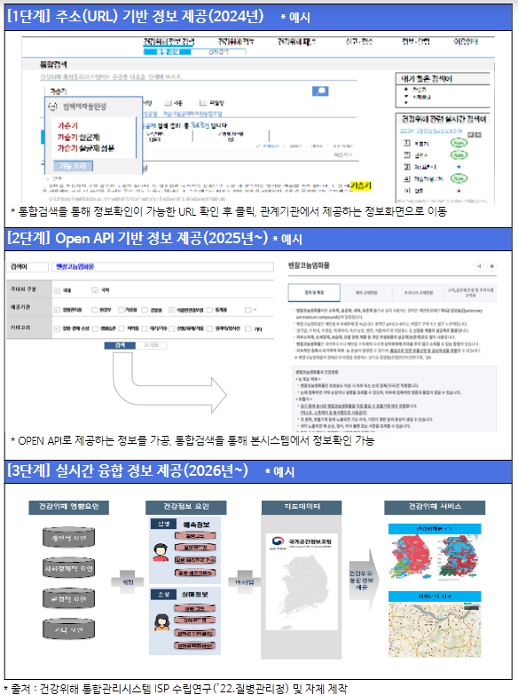 또한, 건강위해 정보의 통합 제공 기능에 더하여 원인불명 비감염성 질환의 신고․감시 및 역학조사 등을 위한 관리 시스템까지 기능을 확장해 나갈 방침이다.