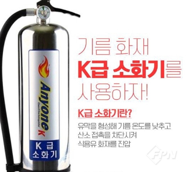 ‘K급 소화기’는 식용유 등 기름으로 인한 화재 시 식용유의 온도를 낮추고 유막을 형성해 산소 공급을 차단해주는 효과가 있다. 기름을 많이 사용하는 주방에서 화재 발생 시 유용하다.