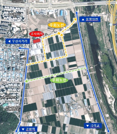 이번 공사구간(우산동 769-1~우산동 202-1번지)은 제수밸브실 등 상수도시설물을 설치하기 위해 도로 전체 폭 굴착이 불가피해 설치기간이 다소 소요될 것으로 예상된다. 이에 따라 해당 구간 차량 진입이 어려워 우회해야 한다. 광주상수도사업본부는 공사 종료까지 차량신호수와 안내간판 등을 배치해 교통불편 등을 최소화할 방침이다.