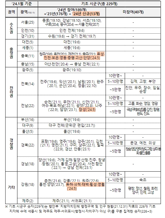 ![]() 알뜰교통카드·K-패스 참여·미참여 지역 |