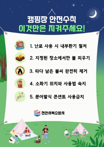 ![]() 천안서북소방서, 겨울철 캠핑장(야영장) 안전수칙 당부 |