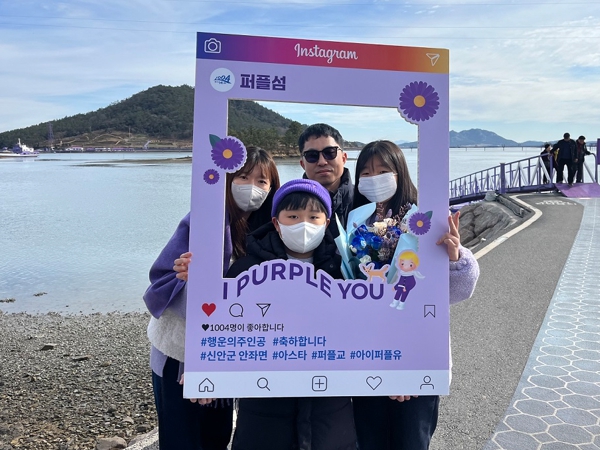 신안군은 2024년 새해 보라색 옷을 입고 온 1004번째 관광객에게 퍼플섬에서의 좋은 추억을 드리고자 꽃다발과 함께 보라색 모자와 목도리, 우산 등 소정의 선물을 증정했고, 기념사진을 남겼다.