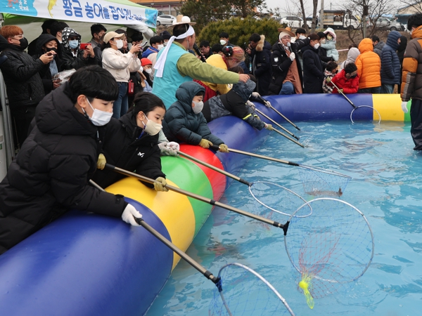 ‘황금숭어를 잡아라’는 주제로 운영되는 숭어 잡기 체험은 13세 이하 어린이만 참여할 수 있으며, 체험비 1만 원을 내고 제한된 시간 안에 뜰채로 숭어를 잡는 체험이다.