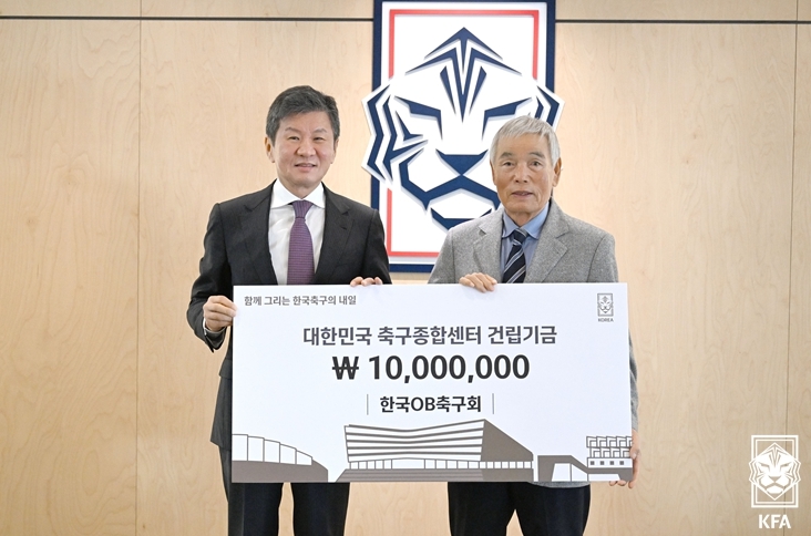 OB축구회는 은퇴한 축구 원로들의 모임으로 1978년 친목을 위한 단체로 시작됐고 최근에는 사회공헌과 재능기부 등으로 더 많은 활동을 하고 있다. 회원 기금 중 1000만원을 성금으로 낸 OB축구회의 이회택 회장은 “축구종합센터 건립에 은퇴선수들의 마음을 모아 동참 할 수 있어 대단히 기쁘고, 축구가 더욱 도약하는 밑거름이 되리라 믿는다”고 밝혔다.