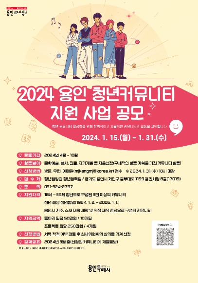 ![]() 용인특례시가 청년커뮤니티 14팀에 1500만원을 지원한다 |