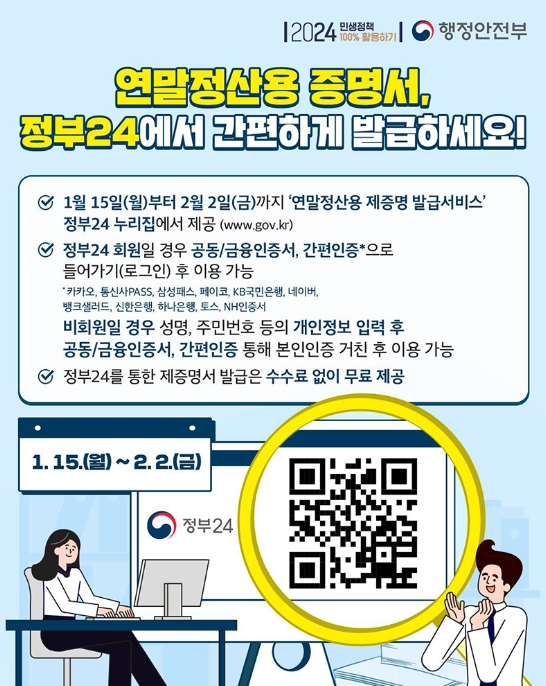 · ‘정부24 연말정산용 제증명 발급서비스’ 제공
