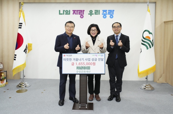 류경기 구청장은 “하나하나 모여진 따뜻한 사랑이 어려움을 겪고 있는 이웃들에게 희망찬 새해를 시작할 수 있는 큰 힘이 될 것”이라며 “중랑문화재단과 중랑재가장기요양기관연합회, ㈜신아주에 감사드린다”고 말했다.