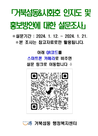 시화호와 거북섬동의 브랜드가치를 높이고자 마련된 이번 설문조사를 통해 거북섬동은 시민들의 의견을 꼼꼼히 수렴하고, 시화호와 거북섬동의 인지도를 향상하는 데 주력할 계획이다.