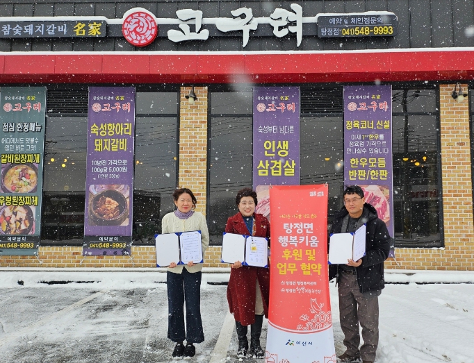 이두열 탕정면장은 “탕정면 주민을 위해 후원을 결정해 주신 고구려 정육식당 대표님에게 감사의 말씀을 드리며, 관내 주민복지 증진을 위해서 지속적으로 노력하겠다“고 전했다.
