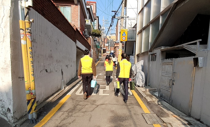 ![]() 발굴된 위기가구 상담을 위해 직접 가구 방문중인 동주민센터 직원들 |